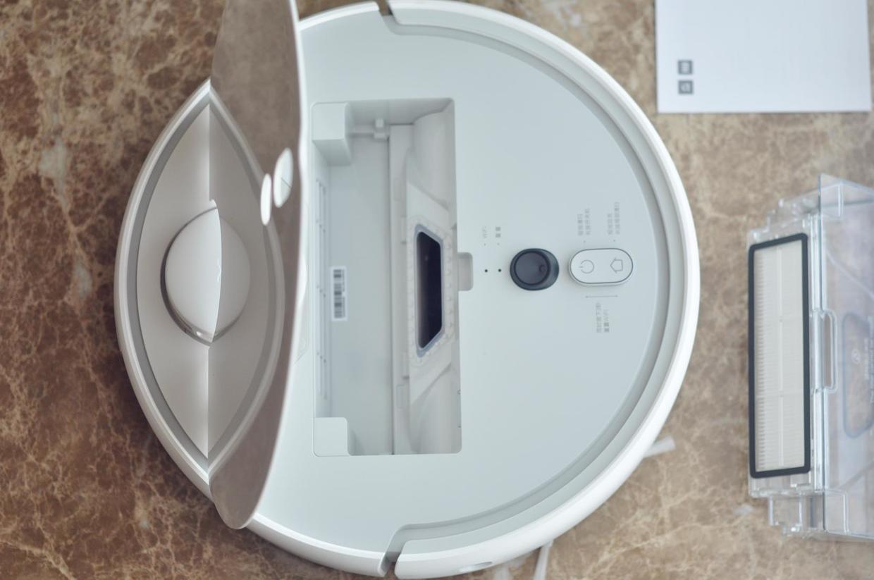 打开开关附近的顶部盖板,便可以一窥米家扫地机器人1S的储尘盒。